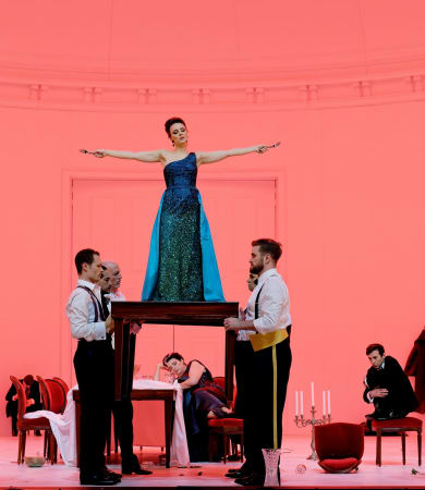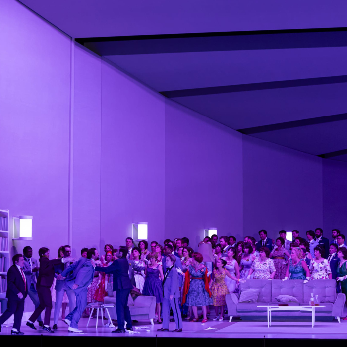 dans un dîner américain moderne et insiste sur l’aspect buffa. Mon objectif est ailleurs : dissiper par la danse la