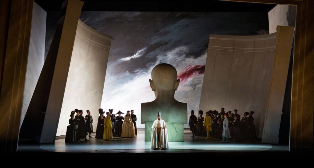 If the liaison between Titus and Berenice inspired one of the greatest French playwrights, it was the Roman Emperor himself, an incarnation of absolute sovereignty, that occupied the central position in what was to be Mozart’s last opera. Marking a return to opera seria in its formal constraints and choice of subject, the work nevertheless defies expectations, its humanity shining forth through an obscure clarity in which the hidden melancholy of a score composed by an already declining Mozart is discernible. Willy Decker’s streamlined production offers an exploration of the nature of power in which forgiveness and reconciliation are examined in all their strength and fragility.