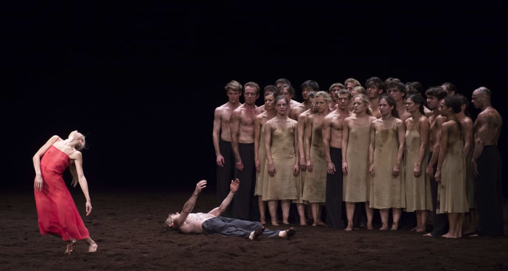 Deux oeuvres de Stravinsky, écrites pour la danse, sont ici réunies : l’une fit scandale à sa création, l’autre marquait le début d’une nouvelle collaboration avec George Balanchine. Agon n’a d’autre argument que la partition et se traduit par une danse pure, abstraite, aux lignes géométriques, faisant écho au titre de l’oeuvre. Dans sa version du Sacre du printemps, Pina Bausch laisse éclater la puissance rythmique de la partition. Sur un sol recouvert de terre, les danseurs se livrent à un rituel bouleversant, traversés d’une énergie exacerbée. Aux côtés de ces deux chefs‑d’oeuvre, Saburo Teshigawara se voit confier une nouvelle création et donne corps à un langage poétique, profond et organique sur le troublant Violin Concerto d’Esa‑Pekka Salonen.