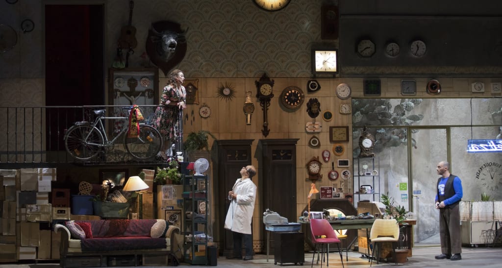 Y compris à faire parler un mort ! Guidé par un sens pointu du détail et du ressort comique, Laurent Pelly livre une production qui remonte les pendules de l’horloger cocu et les accorde à la truculente satire sociale puccinienne.