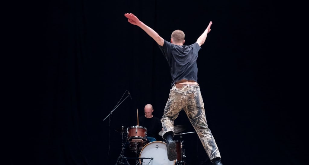 Créée et interprétée par Simon Le Borgne, ancien danseur du Ballet de l’Opéra de Paris, et Ulysse Zangs, musicien, compositeur et danseur, cette pièce mêlant danse et batterie live est un dialogue sensible entre deux hommes portés par l’énergie du souffle et le battement de cœur.